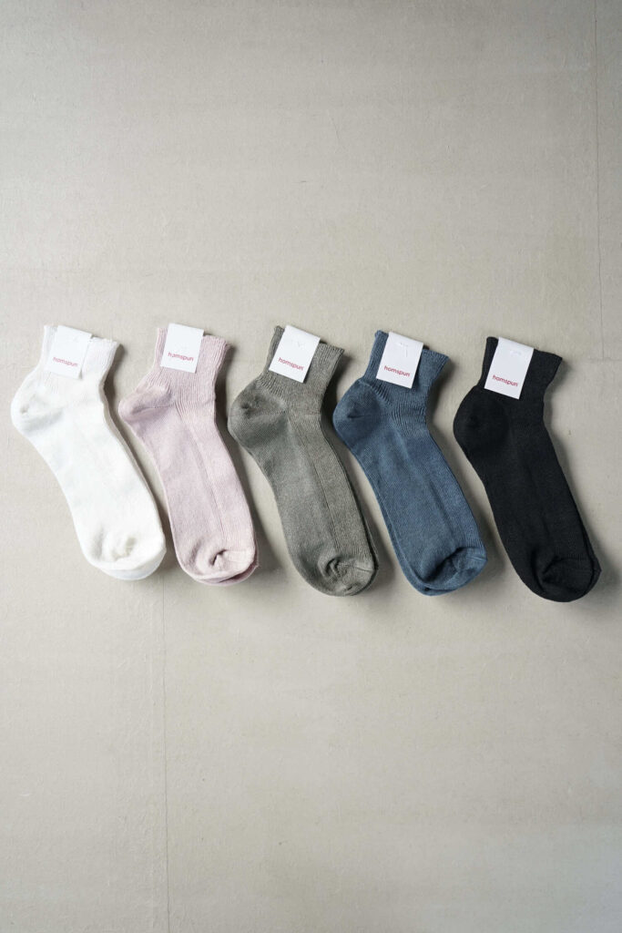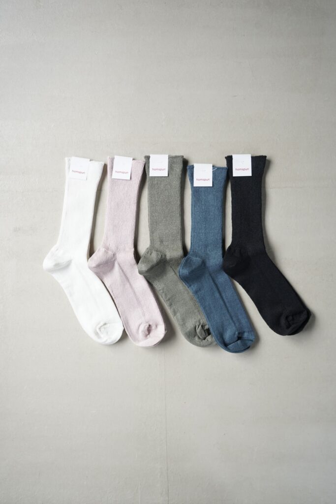 homspun リネンソックス 2026年3月29日 homspun ホワイト・ピンク・モスグリーン・ブルー・ブラック / 22cm – 24cm 2420円税込 2970円税込 < prev next >