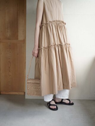 Gauze# SWITCHING GATHER FRILL NO SLEEVE ONE PIECE