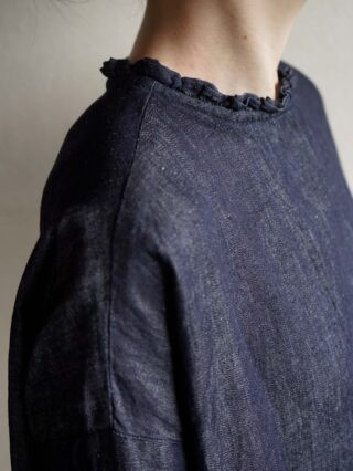 LABORATORY TINY DOUBLE FRILL DENIM BLOUSE